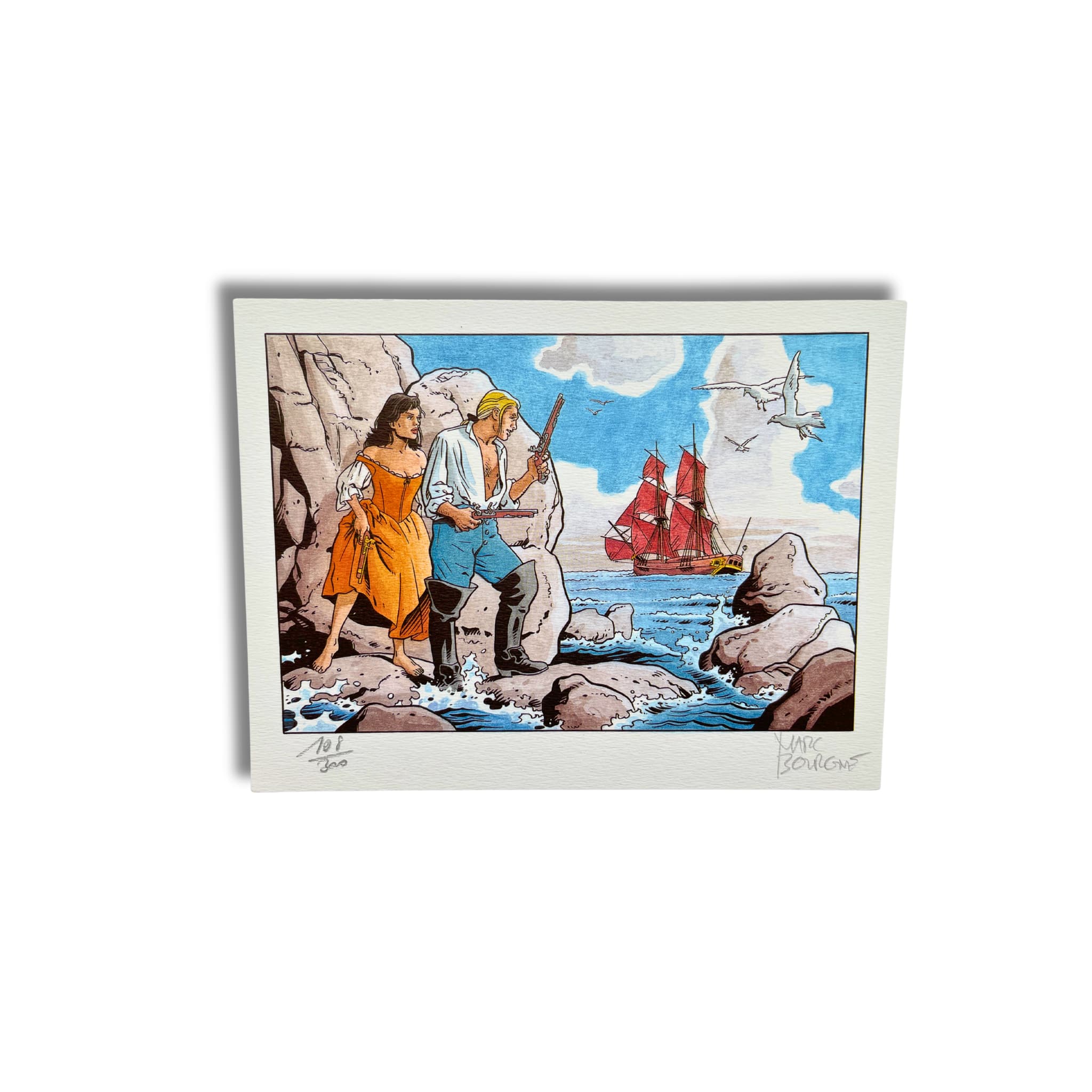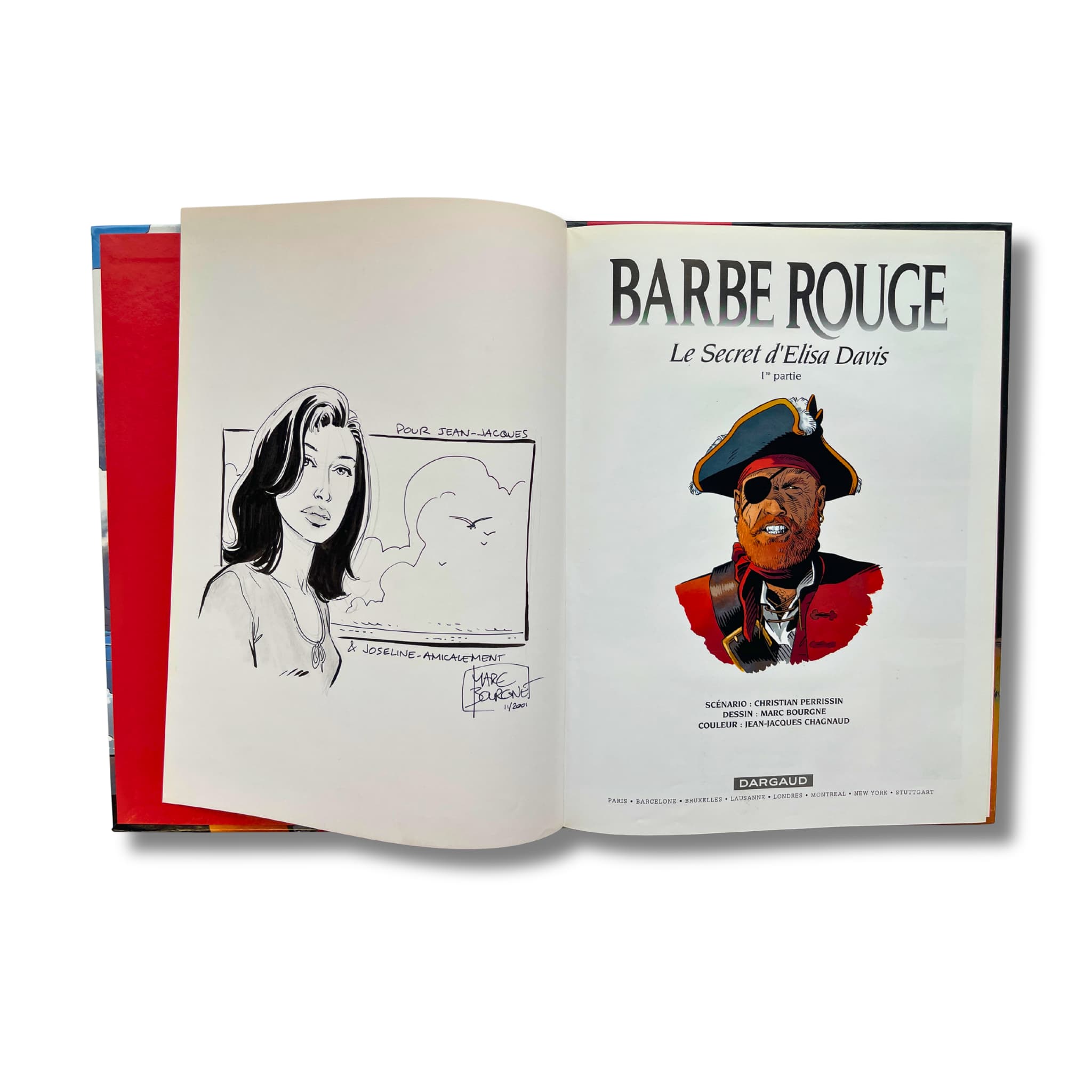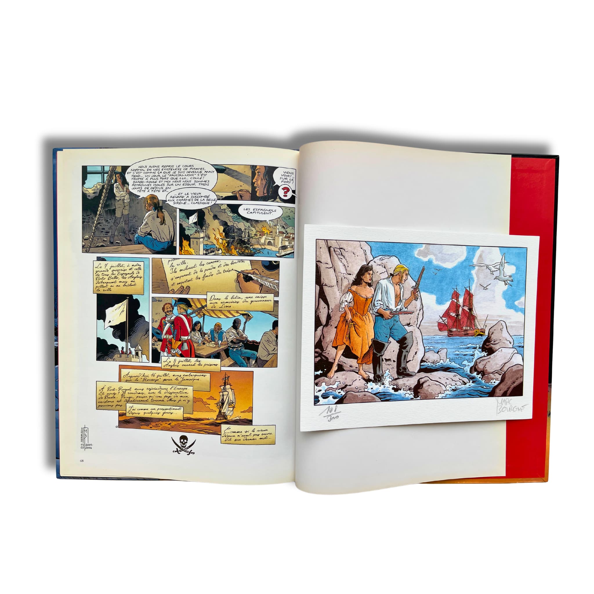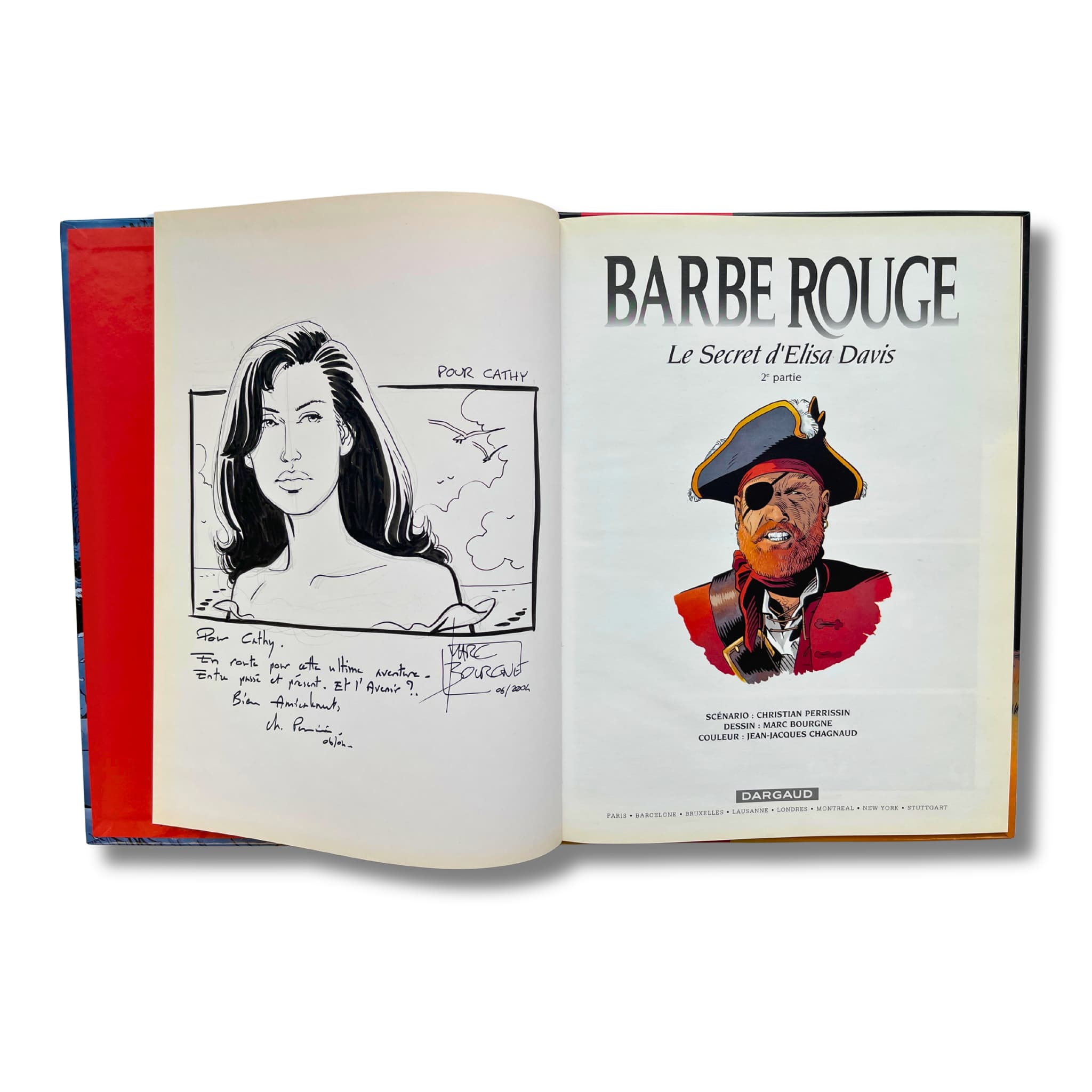 Barbe-Rouge – T. 34 et 35 – EO 2001-2004, accompagnés de 2 dédicaces originales, signées par Marc Bourgne sur les pages blanches, avec deux ex-libris (12,5 × 19 cm), signés, tirage limité n° 77/300, et (16,5 × 22 cm), signé, tirage limité n° 108/300.