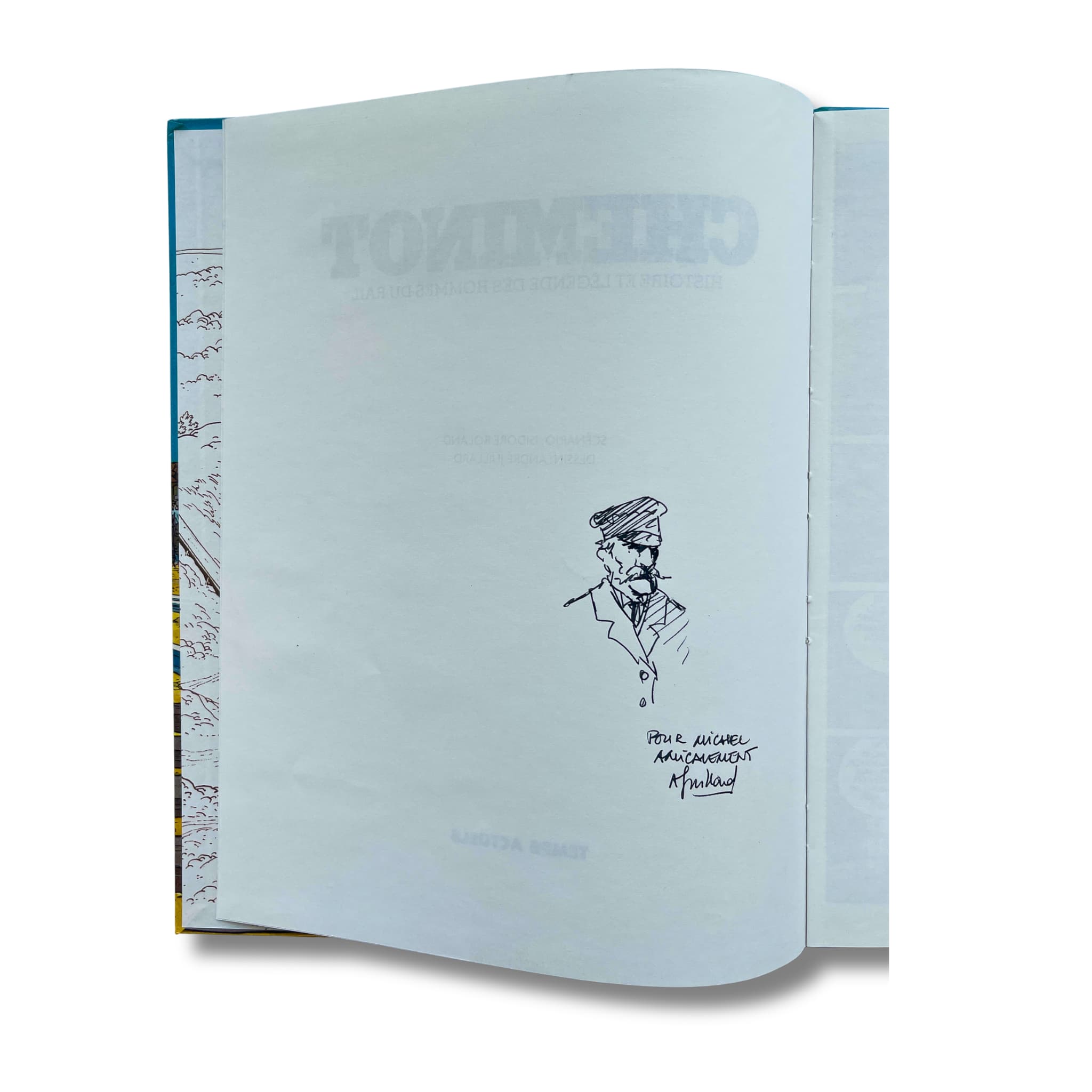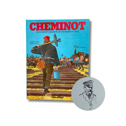 Cheminot, histoire et légende des hommes du rail – EO 1982, accompagné d’une dédicace signée par Juillard sur page blanche avec magazine.