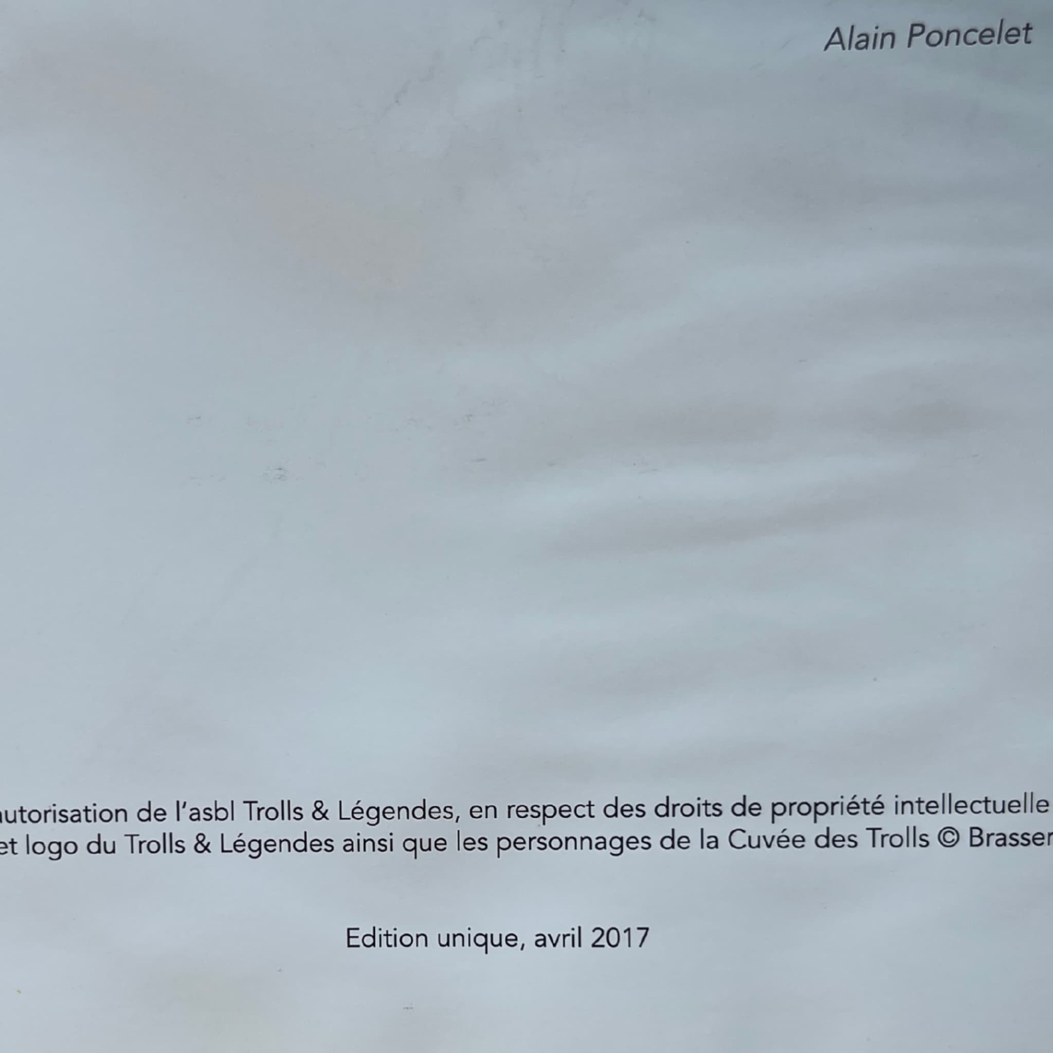 Trolls et Légendes — édition originale 2017, accompagnée d’une dédicace en couleur signée par Poncelet sur la page blanche.