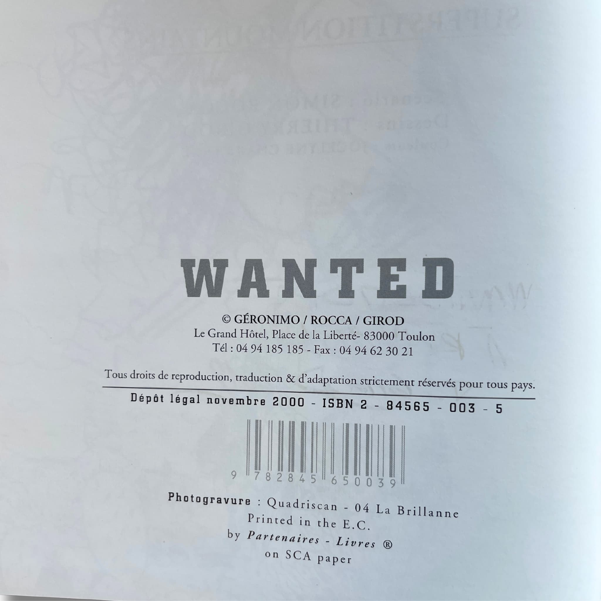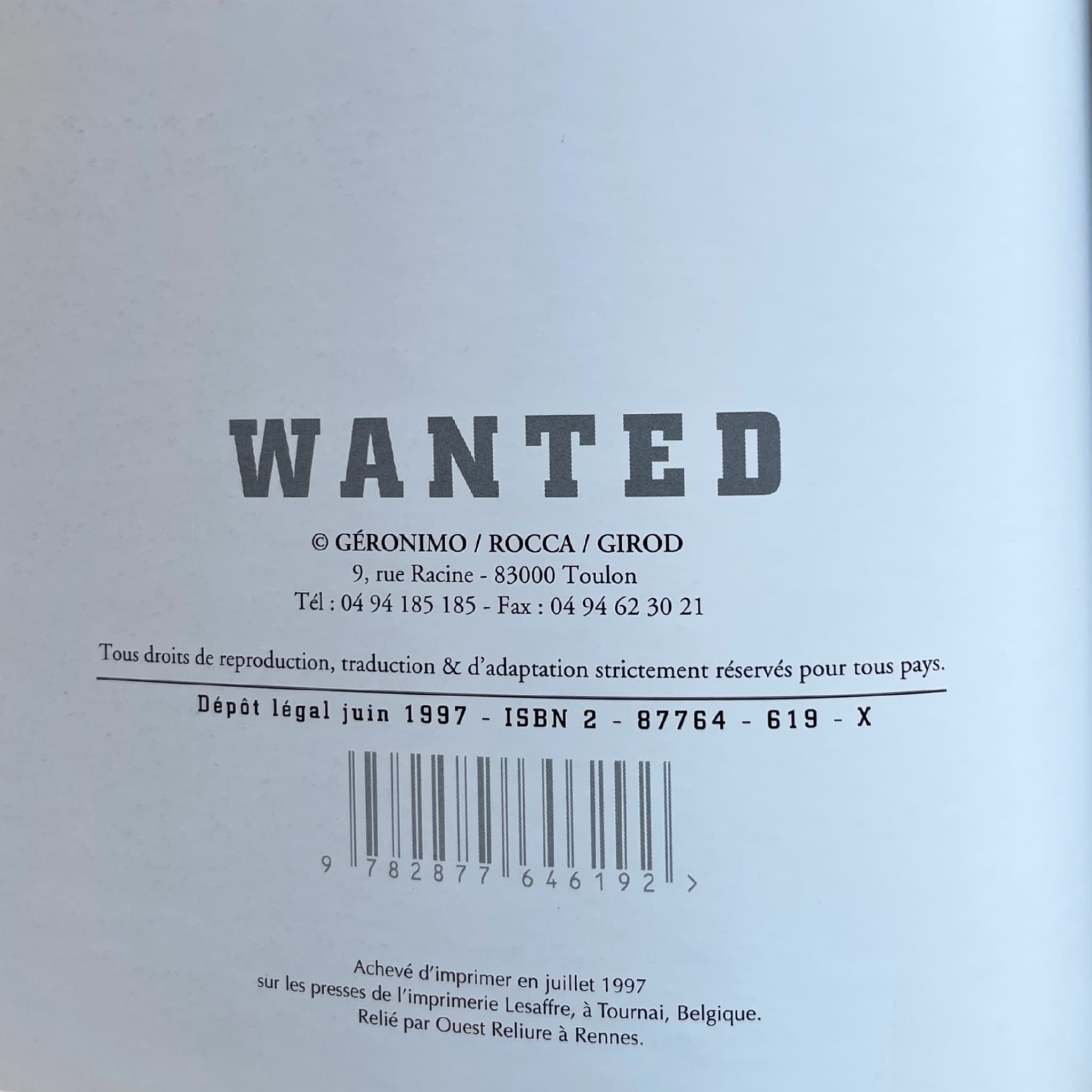 « Wanted » – Tomes 1 à 6, éditions originales 1995–2004, accompagnés de six superbes dédicaces de Girod, avec trois ex-libris signés, numérotés et en tirage limité.